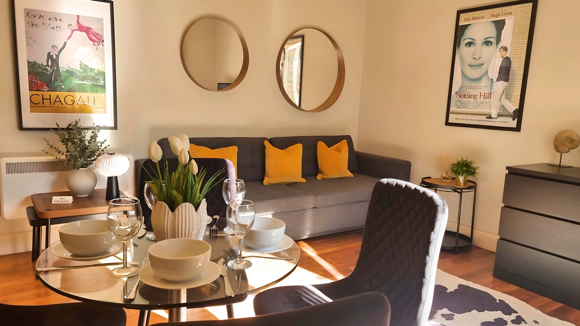 A super comfy king size bed awaits you and with 400 thread count Egyptian pure cotton bedding and puffy pillows you won't want to get out of it! Useful bedside wireless phone chargers ensure your phone is fully charged in the morning, ready capture photos of the local multi coloured Notting Hill houses. Plenty of wardrobe space too.
